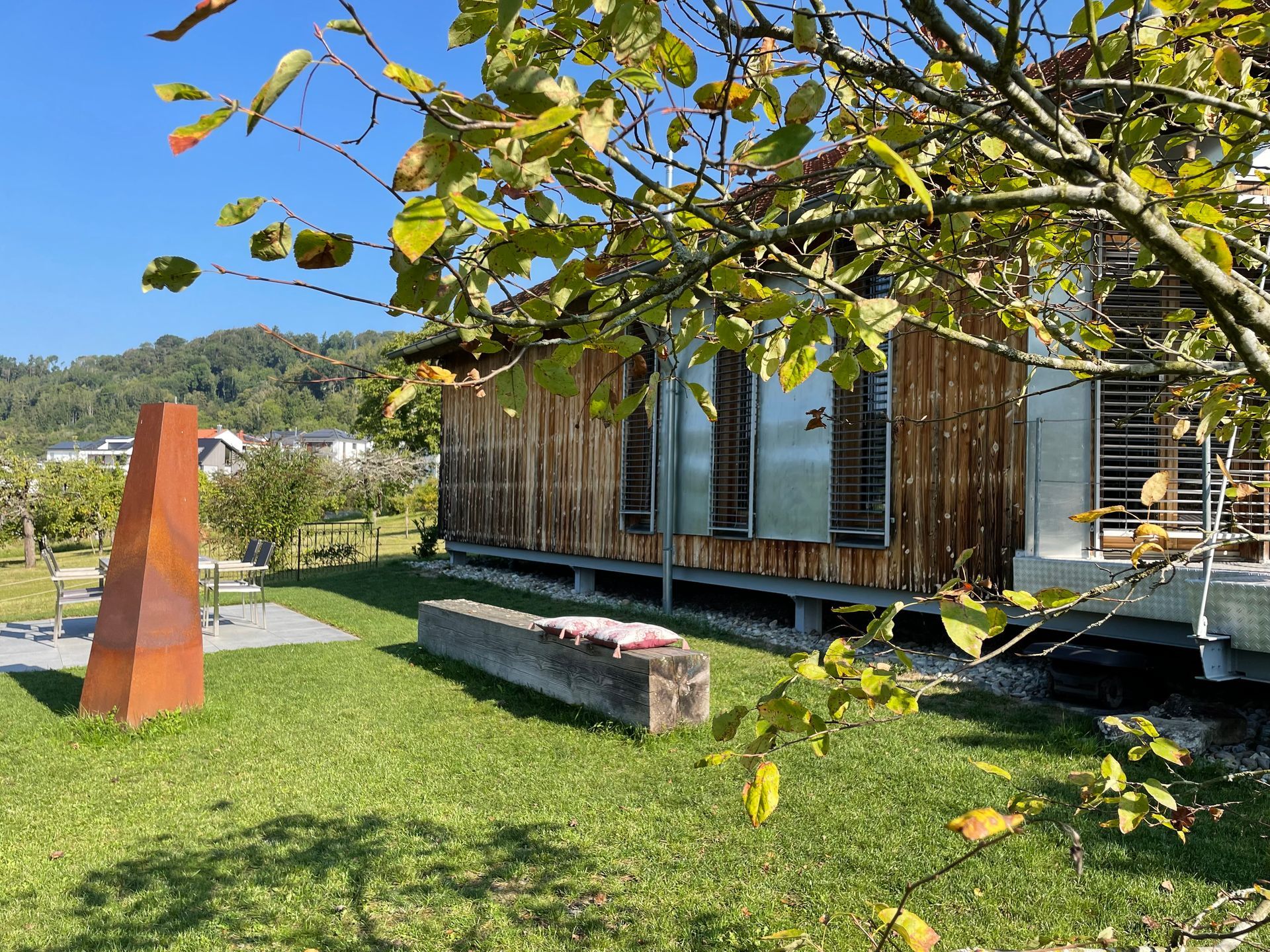 The Sonnenchalet is the ideal small, cozy cottage for couples or small families with babies or toddlers, whether for a week, several days, or even a short stay from Thursday to Sunday or on the weekend. A private, large garden and terrace at the house—no through traffic, but views of orchards and forests.