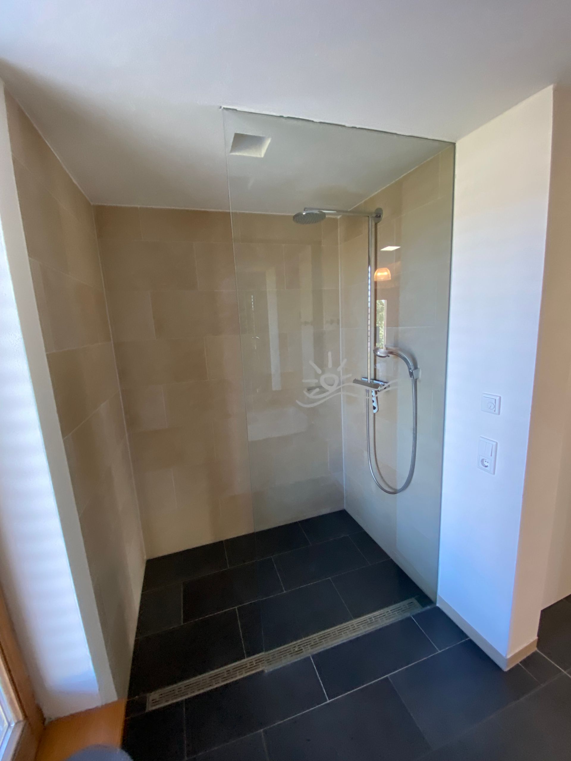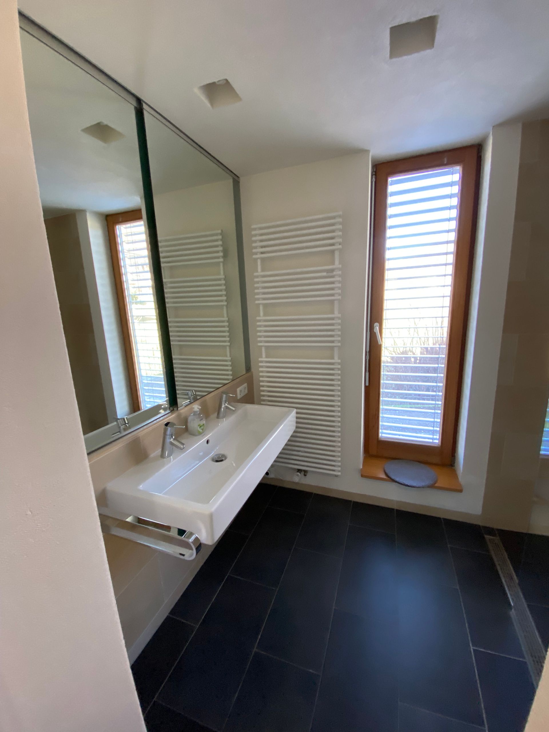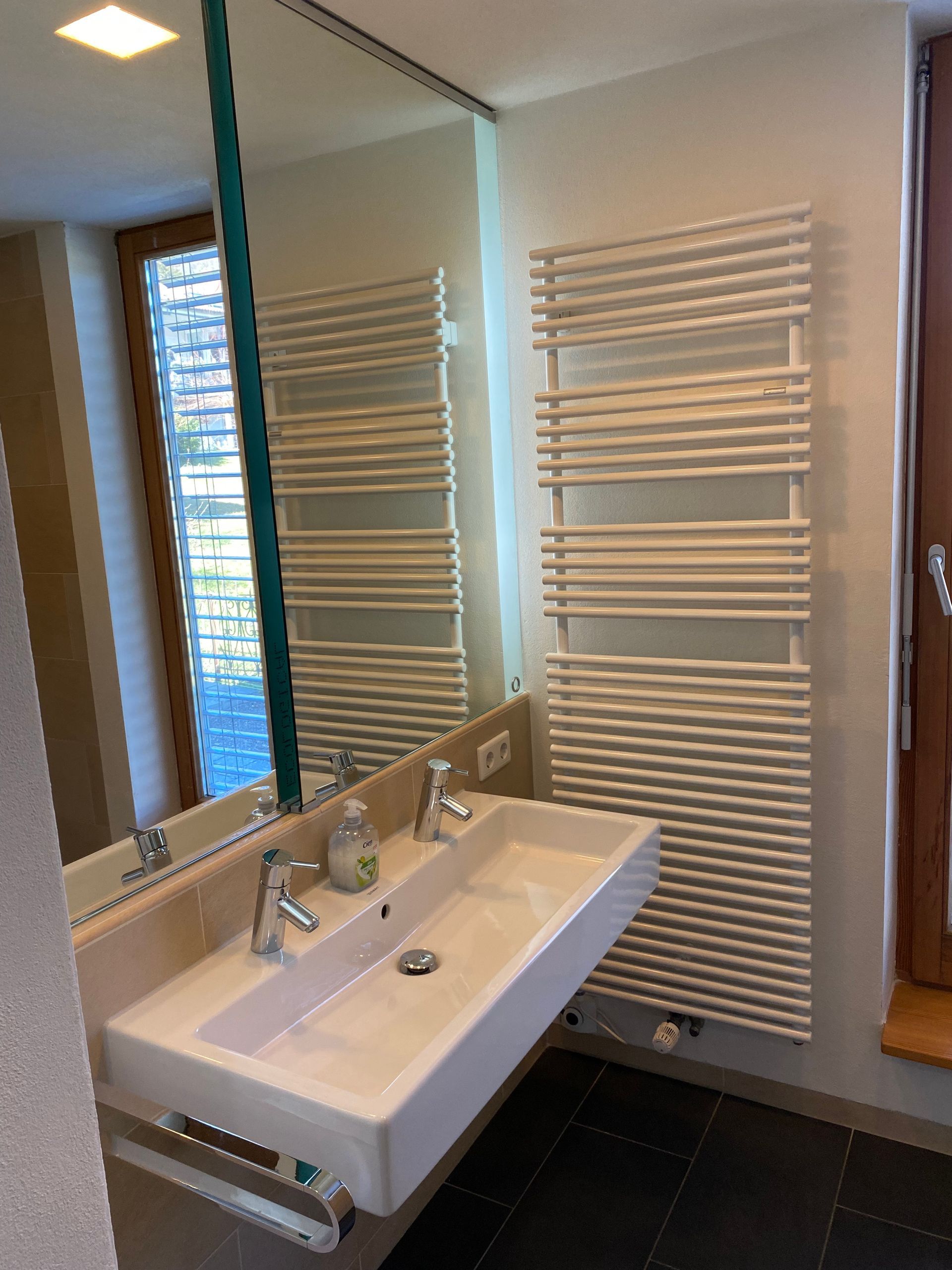 Shower / WC Shower room and separate toilet each with outside window I spacious shower with overhead shower I Glass shower enclosure I sufficient storage space for cosmetics I towel warmer I sufficient towels and bath mats I Toilet paper, cosmetic tissues and soap are provided free of charge (initial supply)