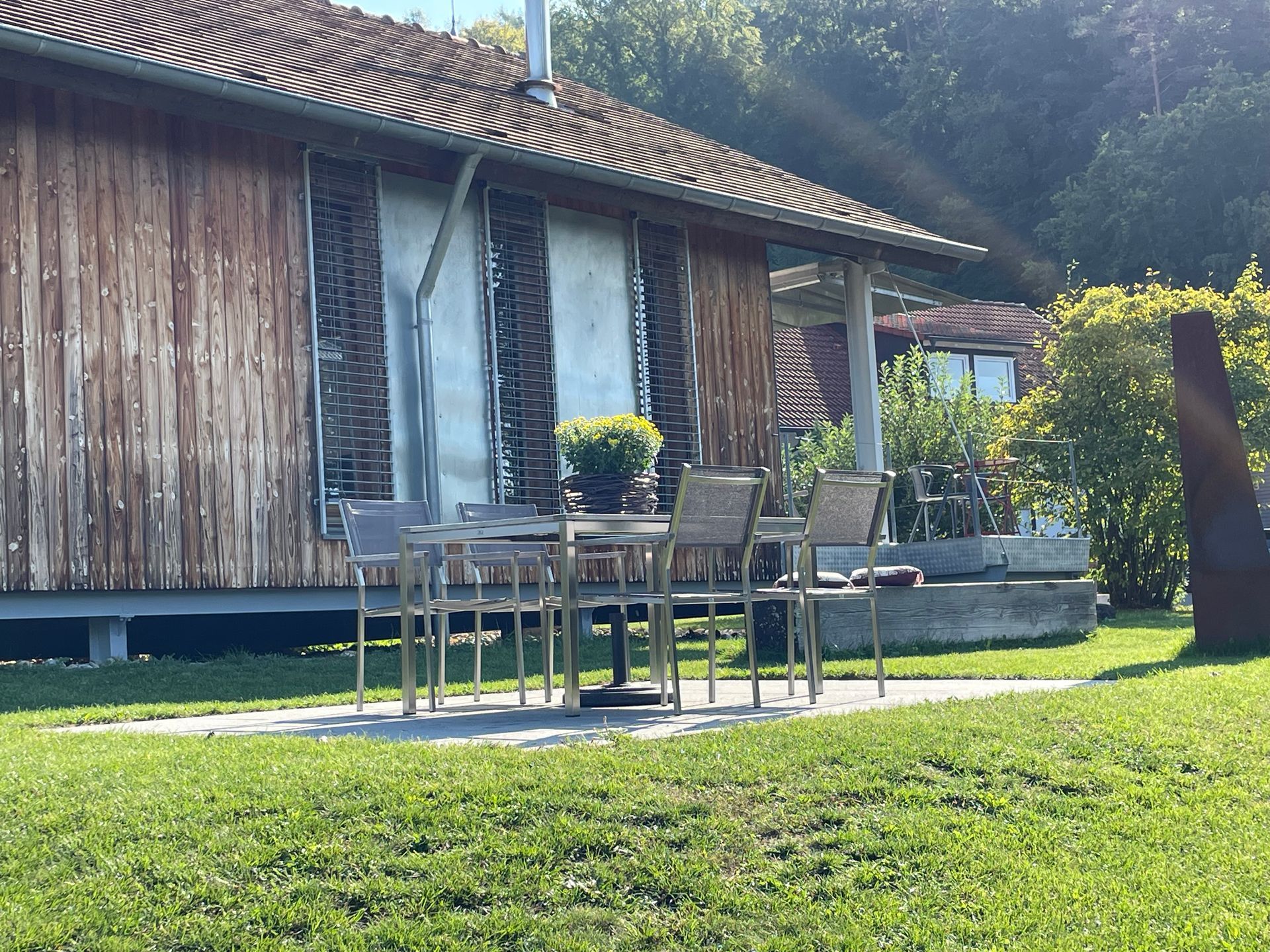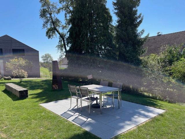 The Sonnenchalet is the ideal small, cozy cottage for couples or small families with babies or toddlers, whether for a week, several days, or even a short stay from Thursday to Sunday or on the weekend. A private, large garden and terrace at the house—no through traffic, but views of orchards and forests.